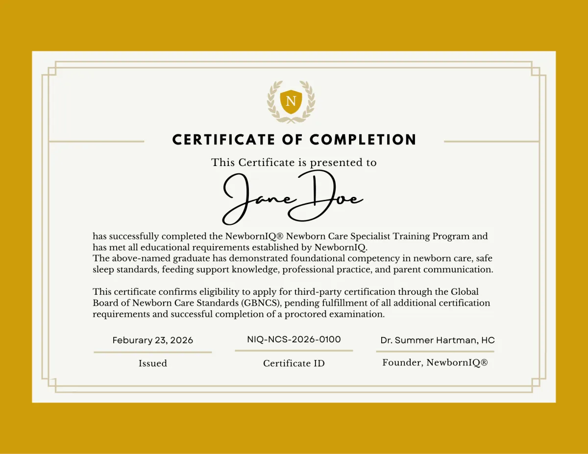At NewbornIQ, your training is designed to be more than “watching modules.” We want you to leave with real-world readiness, professional documentation, and a clear pathway to credibility in the newborn care industry.